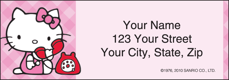 Hello Kitty Address Labels Covers at 70% Off You can buy Hello Kitty coin purses, wallets, address labels. Hello Kitty has changed with the times, always modifying her style without losing her magnetic charm and personality. HELLO KITTY CHECKS NEW COUPON Hello Kitty Labels - Set of 210 Sets of 210 sheeted, self-sticking labels; size 2-1/2" x 7/8". Hello Kitty Classic Address Labels
