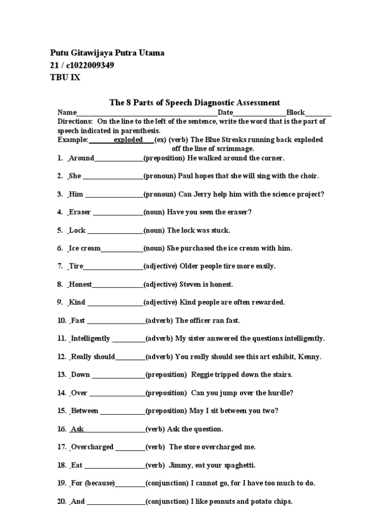 40 the 8 parts of speech diagnostic assessment