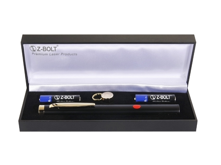 Z-Bolt Green Laser Pointer - Premium Gift - OpticsPlanet Specifications for Z-Bolt Green Laser Pointer - Premium Gift: Features: 98% IR Filtering for Eye & Workplace Safety Black, Chrome or Chrome& Brass Finish Special Design APC Control Circuit Power Source -2 pcs AAA Alkaline Z-Bolt® Certified Power Output LED Power On/Off Indicator Range (Night) -5 Miles Diode Operating Life -3,000 to 5,000 hours